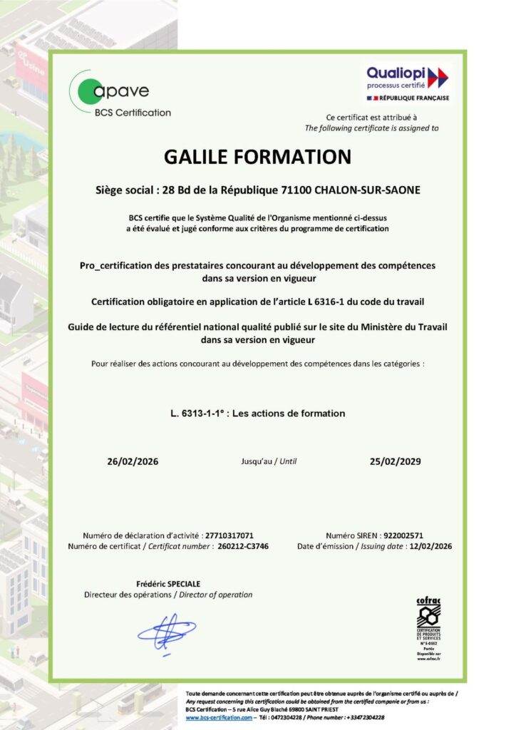 Une pédagogie de terrain portée par des experts pour garantir une formation de qualité, les formateurs de Galilé Formation sont tous des salariés du Groupe Galilé. Ils conjuguent une solide expérience métier, acquise sur le terrain auprès des clients, et des compétences pédagogiques renforcées en permanence. Ce modèle des « formateurs praticiens » assure un haut niveau d’expertise et un accompagnement homogène.